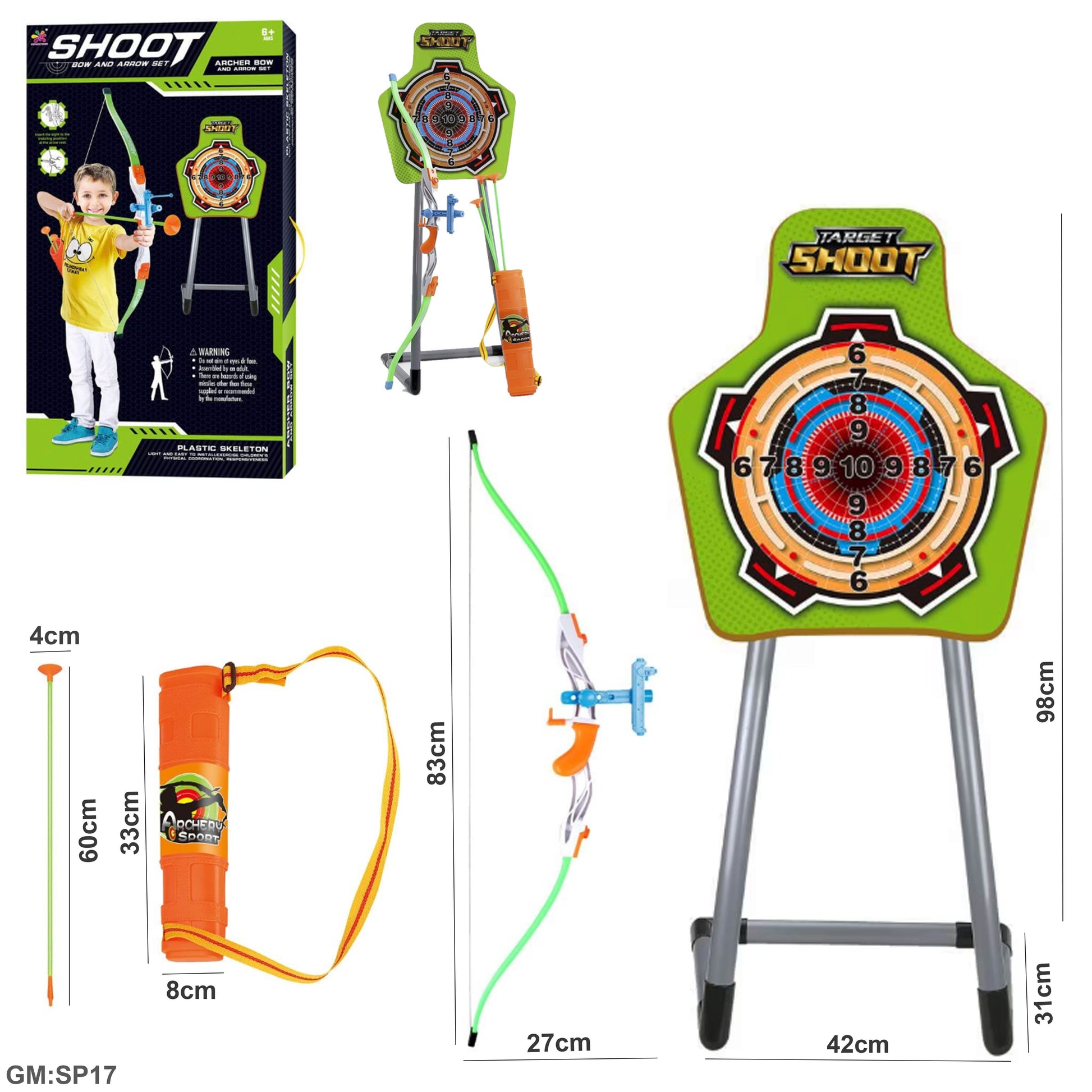 The Kids Shooting Archer Toys Bow & Arrow Set "SP17" is designed to introduce children to the fundamentals of archery in a safe and enjoyable manner. Crafted from durable, lightweight materials, this set ensures ease of use and accurate shooting for young beginners. Equipped with suction cup arrows, it prioritizes safety while allowing kids to build focus, coordination, and confidence through active play. This set is ideal for developing concentration and motor skills under supervised conditions.