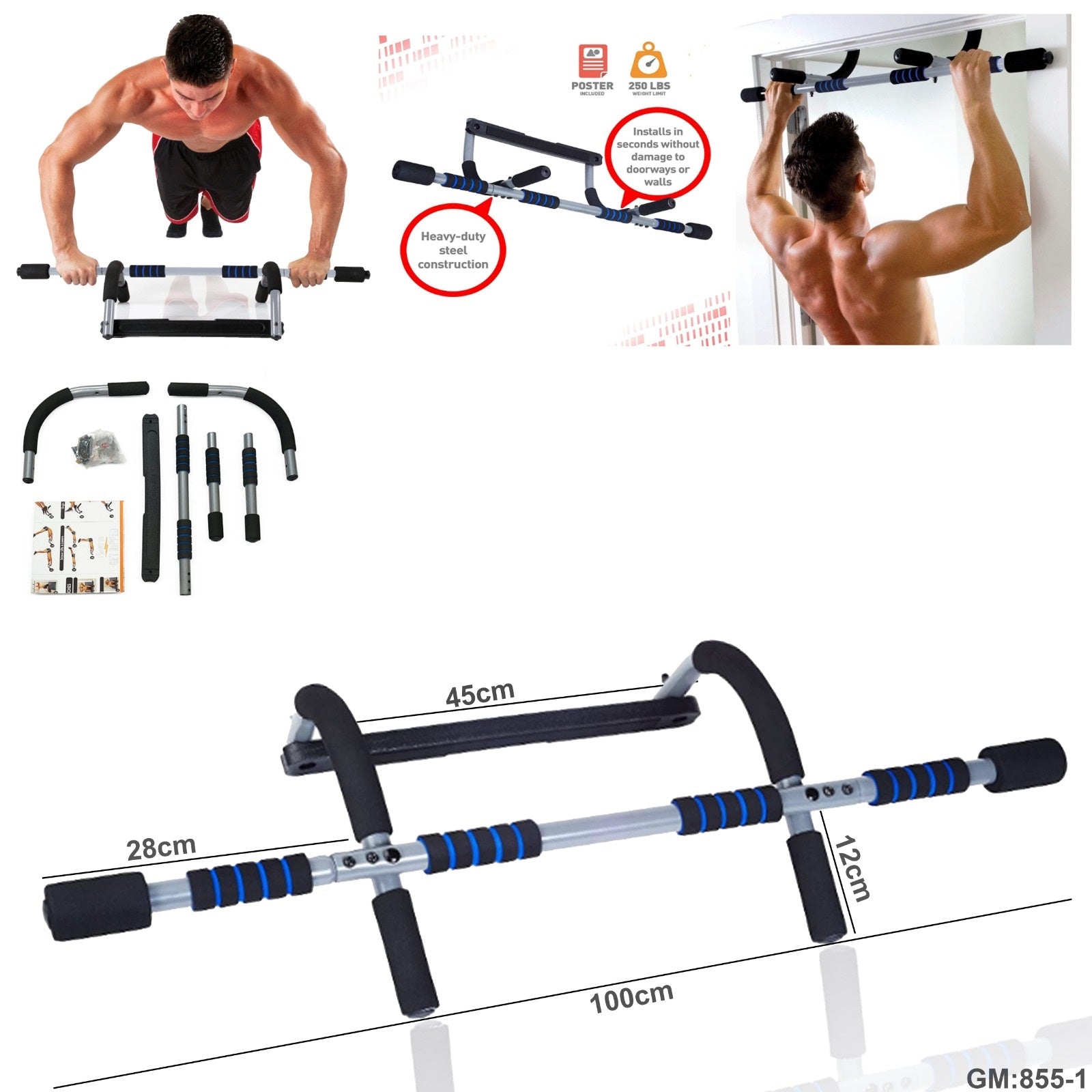 The Multi-Purpose Doorway Pull-Up Bar "855-1" is designed for versatile strength training at home. Its sturdy construction ensures reliable support for pull-ups, chin-ups, and other upper body exercises. Easy to install on most door frames without permanent fixtures, it offers a convenient solution for effective workouts in limited spaces. Ideal for users seeking to enhance muscle tone and upper body strength with a professional-grade, space-saving tool.