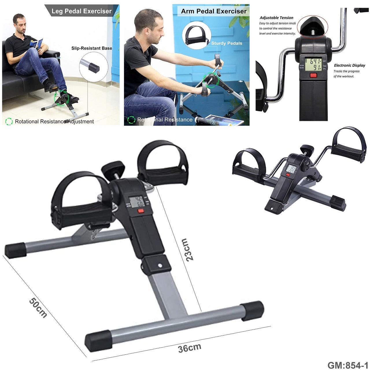 Pedal Trainer for Legs & Arms with LCD Display Fitness Bike "854-1"