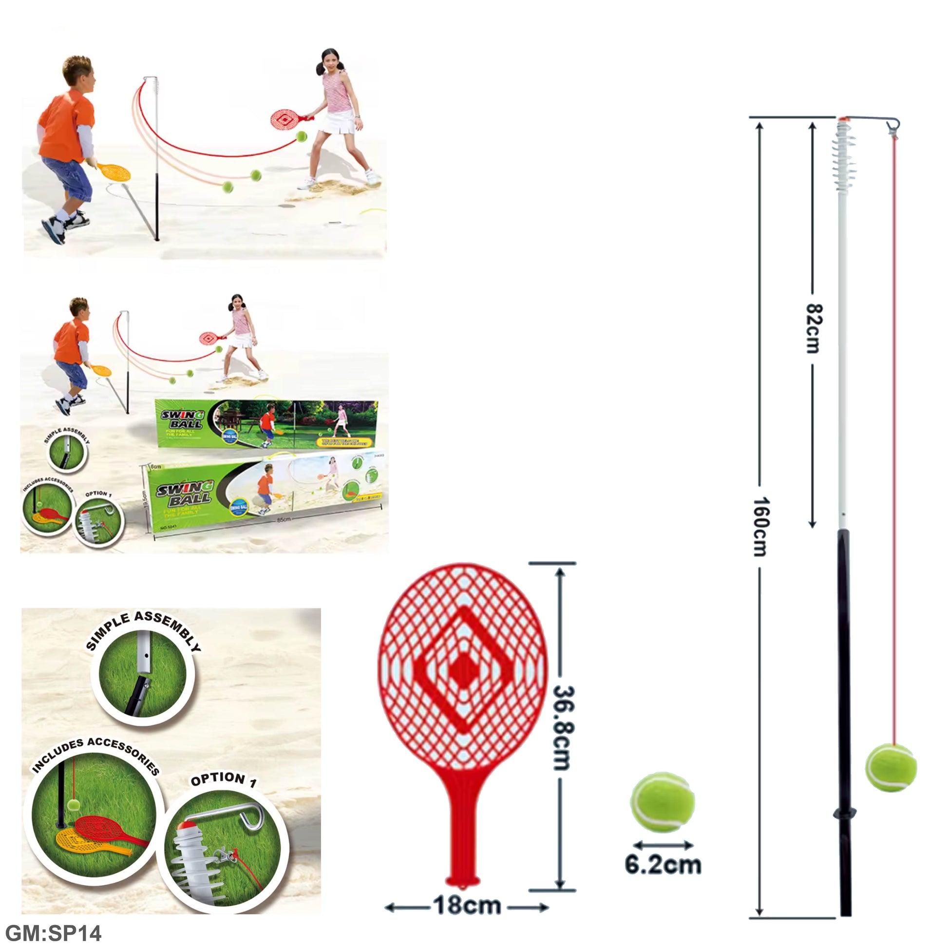 Enhance your outdoor play with the Swing Tennis Ball Set "SP14," featuring two high-quality rackets, a durable ball, and a tetherball pole designed for easy assembly. This complete set offers a reliable setup for tennis and tetherball games, promoting skill development and active fun. Ideal for both casual and focused practice, it delivers stability and versatility to support dynamic play in any backyard or recreational space.